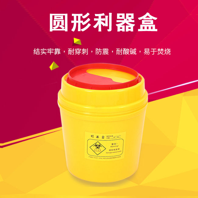 特征:利器盒采用不含PVC的硬质塑料制造,具备耐穿刺,不渗漏,不易破裂、易于焚烧,封闭后完全不能正常打开的基本性能;利器盒整体呈黄色,盒体侧面注明“损伤性废物”,并印有“医疗废物警示标识”。